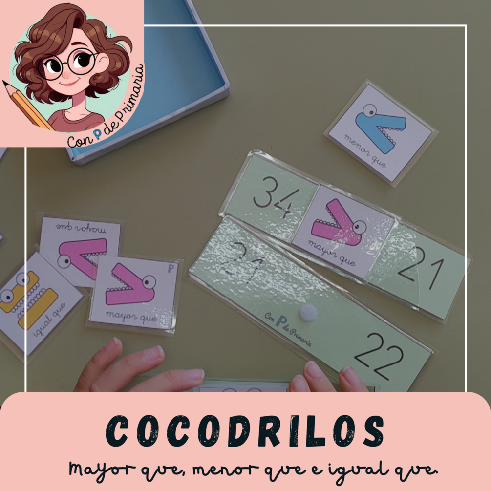 Cada tipo de cocodrilo va asociado a un color, por lo que se puede poner un gomet detrás de cada tarjeta con la solución para poder hacerlo autocorrectivo.